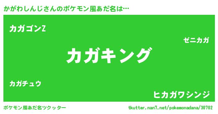 | 男性向けラノベタイトル風あだ名 | 『かがわしんじ~年齢イコール彼女いない歴の魔法使い~』 |