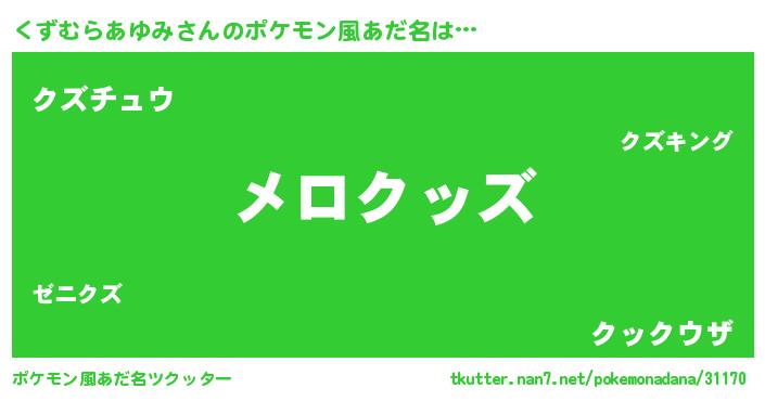 | 恥ずかしいあだ名 | 『プリティーくずむらあゆみ』『くずちん』 |