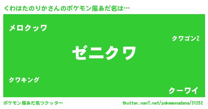 | 意味不明あだ名 | 『永久保存くわはたのりか』 |