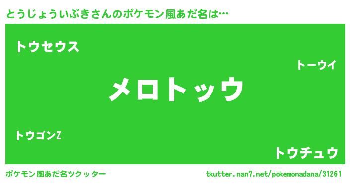 | 欧米人風あだ名 | 『とうじょういぶき・ステッグマイヤー』 |