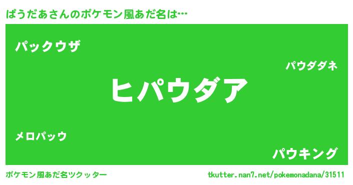 | 女子向けラノベタイトル風あだ名 | 『ぱうだあの卵を拾いまして』 |