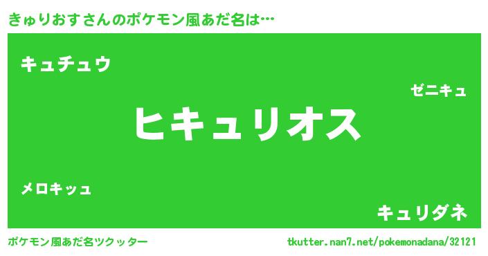 | 男性向けラノベタイトル風あだ名 | 『ダンジョンにきゅりおすを求めるのは間違っているだろうか』 |