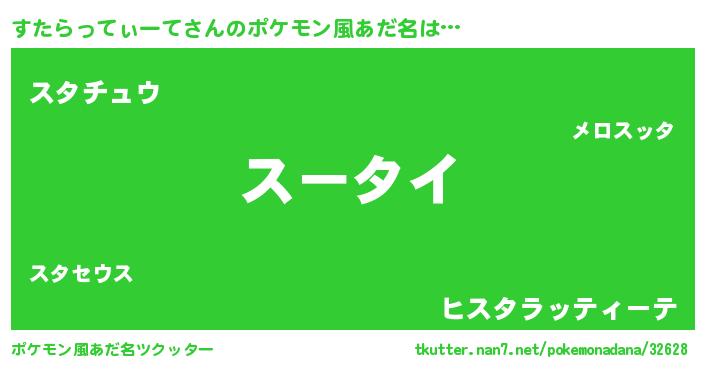 | 女子向けラノベタイトル風あだ名 | 『すたらってぃーてが死なない童話 林檎のすたらってぃーての診療簿』 |