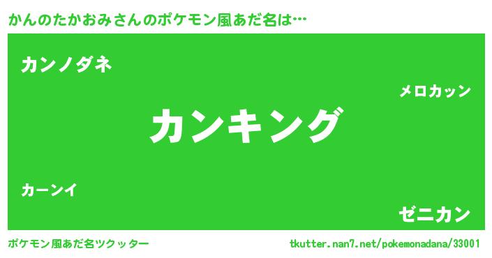 | 男性向けラノベタイトル風あだ名 | 『転生したらかんのたかおみだった件』 |