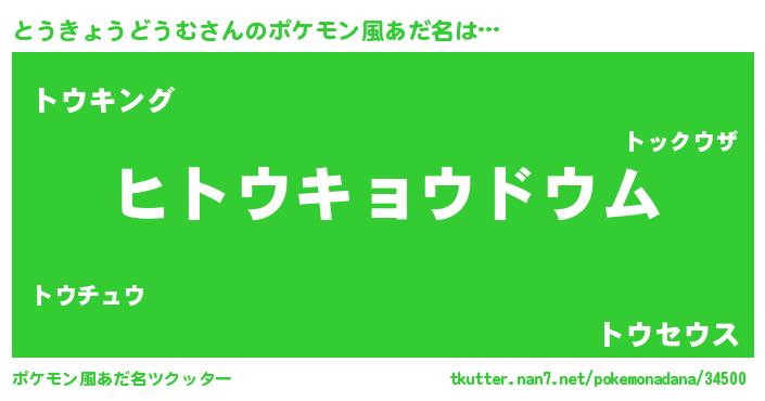 | 女子向けラノベタイトル風あだ名 | 『とうきょうどうむの卵を拾いまして』 |