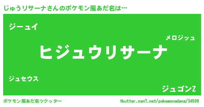 | 男性向けラノベタイトル風あだ名 | 『じゅうリサーナの嫁は女の子じゃないと思った?』 |