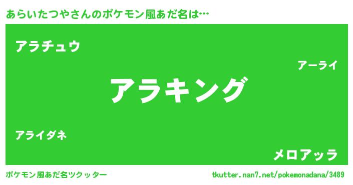 | 男性向けラノベタイトル風あだ名 | 『あらいたつや~年齢イコール彼女いない歴の魔法使い~』 |