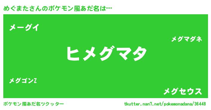 | 男性向けラノベタイトル風あだ名 | 『めぐまたの嫁は女の子じゃないと思った?』 |