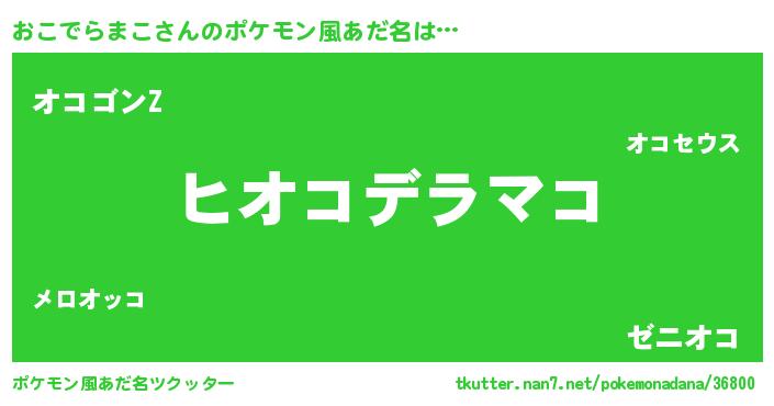 | 女子向けラノベタイトル風あだ名 | 『おこでらまこの卵を拾いまして』 |
