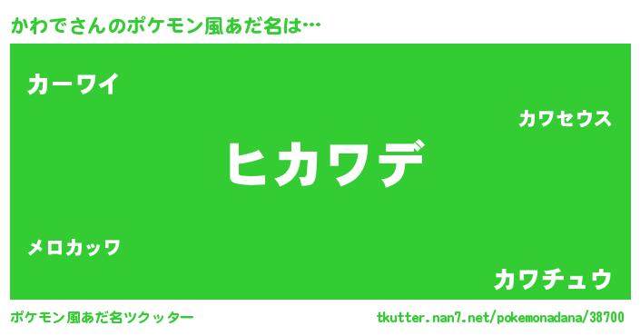 | 男性向けラノベタイトル風あだ名 | 『ダンジョンにかわでを求めるのは間違っているだろうか』 |
