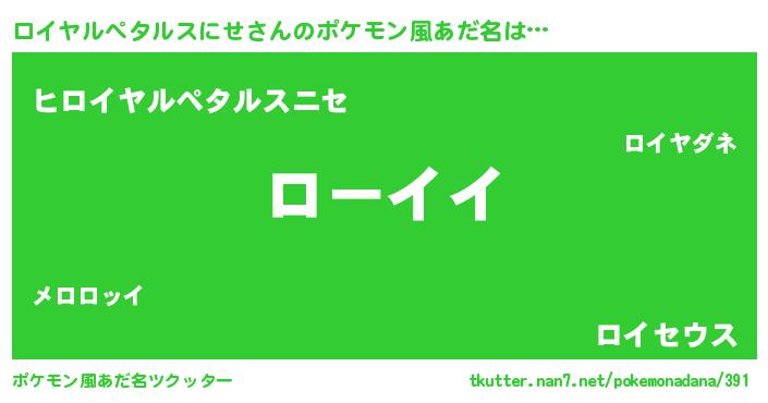 | 料理風あだ名 | 『ロイヤルペタルスにせのカルパッチョ風』 |