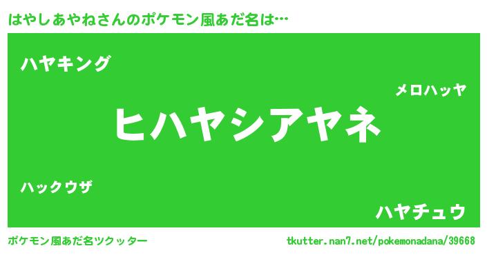 | 欧米人風あだ名 | 『ウサインはやしあやね』 |
