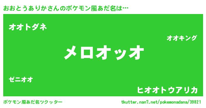 | 欧米人風あだ名 | 『おおとうありか・ステッグマイヤー』 |