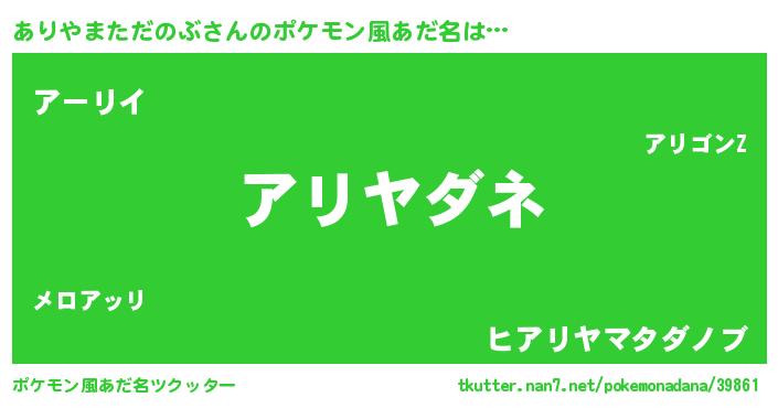 | ファンタジー風あだ名 | 『エターナルアリヤマタダノブー』 |