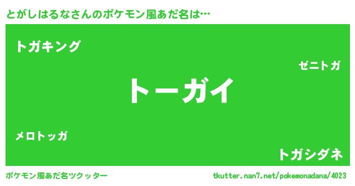 | ヒーロー風カッコイイあだ名 | 『仮面トガダー』『ネオトガシハルナ』 |