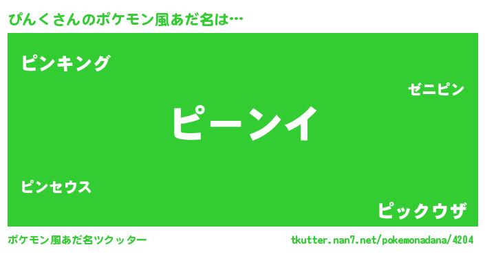 | 男性向けラノベタイトル風あだ名 | 『この素晴らしい世界にぴんくを!』 |