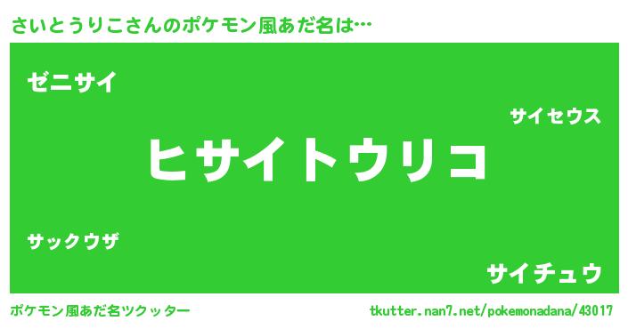 | 男性向けラノベタイトル風あだ名 | 『ダンジョンにさいとうりこを求めるのは間違っているだろうか』 |