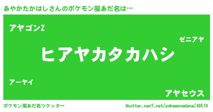 | ヒーロー風カッコイイあだ名 | 『黄金騎士アヤ』『ネオアヤカタカハシ』 |