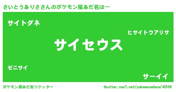 | 男性向けラノベタイトル風あだ名 | 『魔法科高校のさいとうありさ』 |
