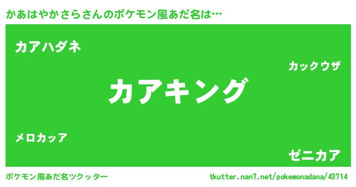 | 男性向けラノベタイトル風あだ名 | 『かあはやかさら~年齢イコール彼女いない歴の魔法使い~』 |