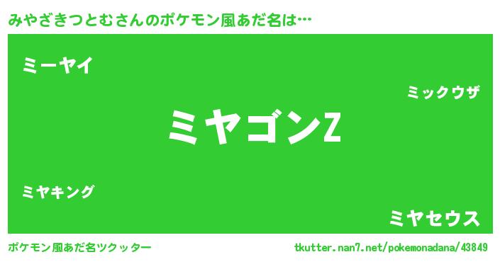 | ヘコむあだ名 | 『みやざきつとむ(遠い目)』『みやふぇ~』 |
