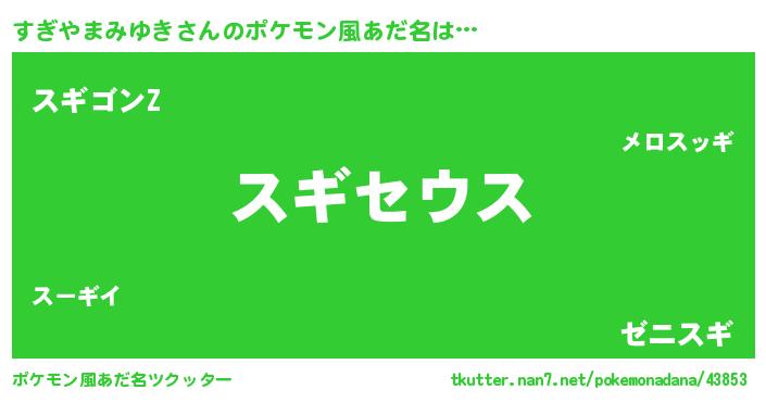 | 男性向けラノベタイトル風あだ名 | 『Re:すぎやまみゆきから始める異世界生活』 |