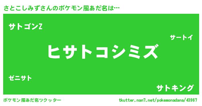 | 意味不明あだ名 | 『とにかく怪しいさとこしみず』 |