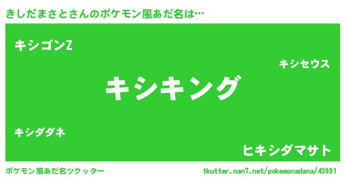 | 男性向けラノベタイトル風あだ名 | 『きしだまさと~年齢イコール彼女いない歴の魔法使い~』 |