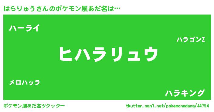| 男性向けラノベタイトル風あだ名 | 『はらりゅうの嫁は女の子じゃないと思った?』 |