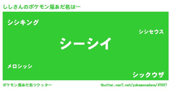 | ヒーロー風カッコイイあだ名 | 『仮面シシダー』『愛の使者しし』 |