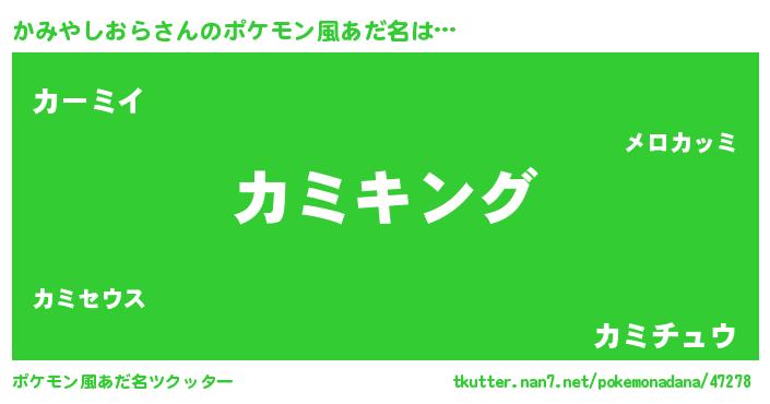 | 男性向けラノベタイトル風あだ名 | 『かみやしおら~年齢イコール彼女いない歴の魔法使い~』 |