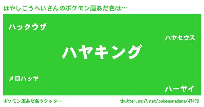 | 男性向けラノベタイトル風あだ名 | 『転生したらはやしこうへいだった件』 |