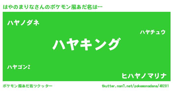 | 男性向けラノベタイトル風あだ名 | 『ハヤノマリナスレイヤー』 |