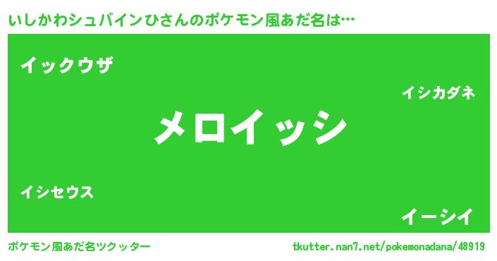 | 欧米人風あだ名 | 『いしかわシュバインひ・ステッグマイヤー』 |