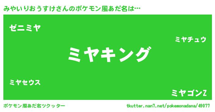 | ヘコむあだ名 | 『みやいりおうすけ(笑)』『みやっふぃ~』 |