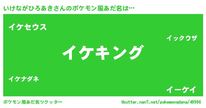| 男性向けラノベタイトル風あだ名 | 『いけながひろあき~年齢イコール彼女いない歴の魔法使い~』 |