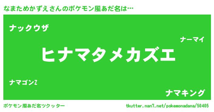 | 意味不明あだ名 | 『とにかく怪しいなまためかずえ』 |