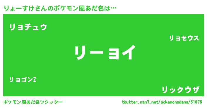 | 男性向けラノベタイトル風あだ名 | 『魔弾の王とりょーすけ』 |