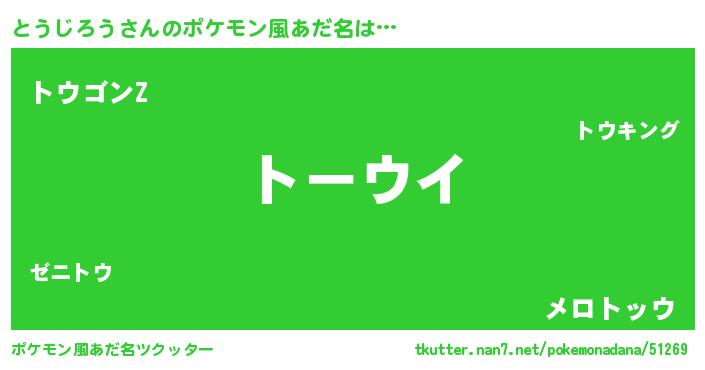 | 意味不明あだ名 | 『住所不定無職とうじろう(95歳)』 |