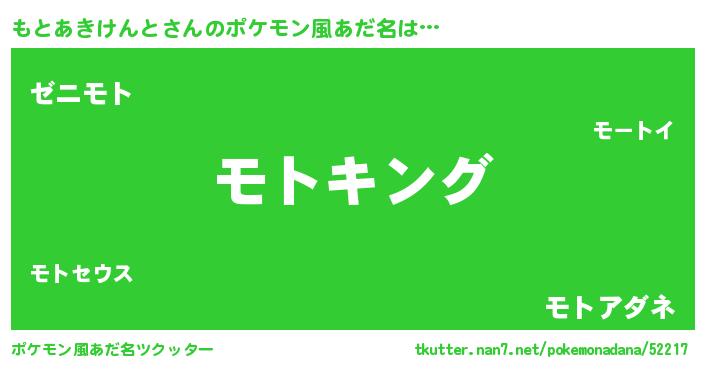 | 男性向けラノベタイトル風あだ名 | 『もとあきけんと~年齢イコール彼女いない歴の魔法使い~』 |