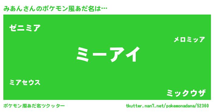 | ヘコむあだ名 | 『みあん(小並感)』『みあを』『豆乳』 |