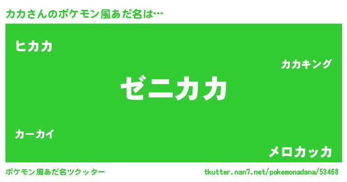 | 男性向けラノベタイトル風あだ名 | 『カカという概念が存在しない退屈な世界 』 |