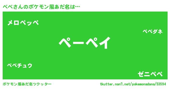 | 男性向けラノベタイトル風あだ名 | 『この素晴らしい世界にぺぺを!』 |