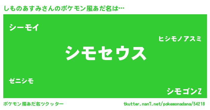 | 男性向けラノベタイトル風あだ名 | 『Re:しものあすみから始める異世界生活』 |