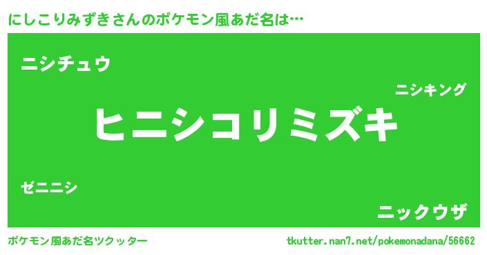 | 女子向けラノベタイトル風あだ名 | 『にしこりみずきの卵を拾いまして』 |