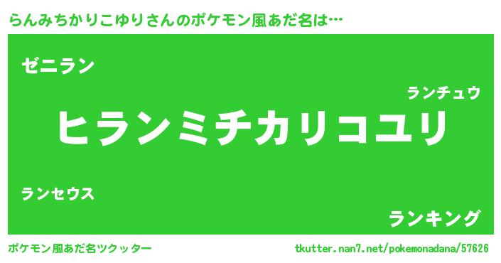 | 欧米人風あだ名 | 『ウサインらんみちかりこゆり』 |