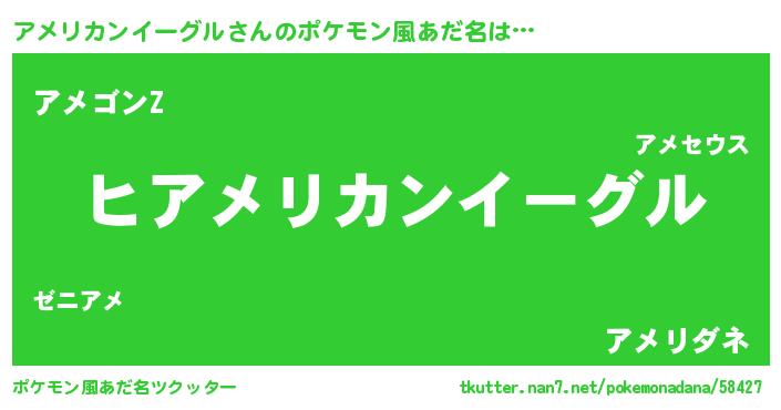 | 男性向けラノベタイトル風あだ名 | 『アメリカンイーグルの嫁は女の子じゃないと思った?』 |