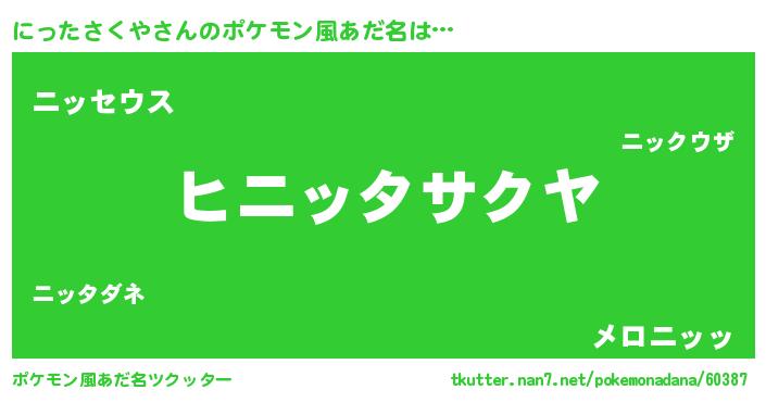 | 男性向けラノベタイトル風あだ名 | 『にったさくやの嫁は女の子じゃないと思った?』 |