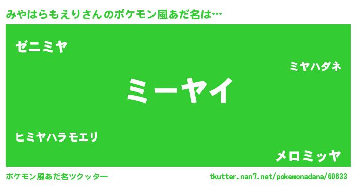 | 意味不明あだ名 | 『住所不定無職みやはらもえり(5歳)』 |
