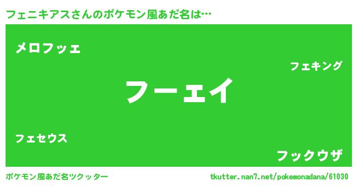 | ヘコむあだ名 | 『フェぷりん』『フェニキアス(笑)』 |